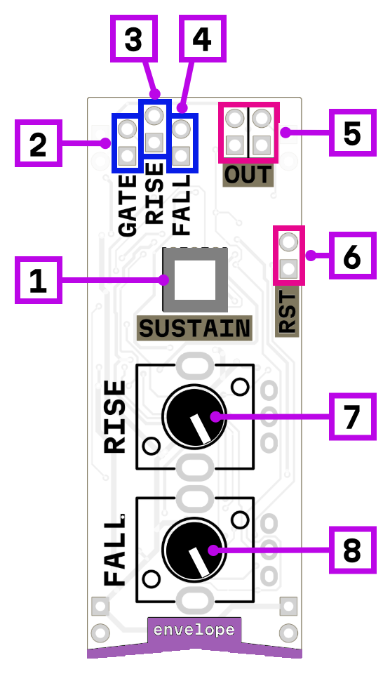 We have issue with time range right now, but the range can be fixed by tuning of the resistor values. I plan to implement rise/fall time from about 30 second up to 0.005 second (200 Hz), so you can use this module as LFO and even as signal oscillator