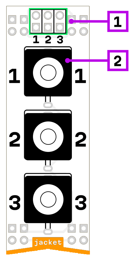 Eurorack compatible 3.5mm jack mono 3 channel passive adapter.