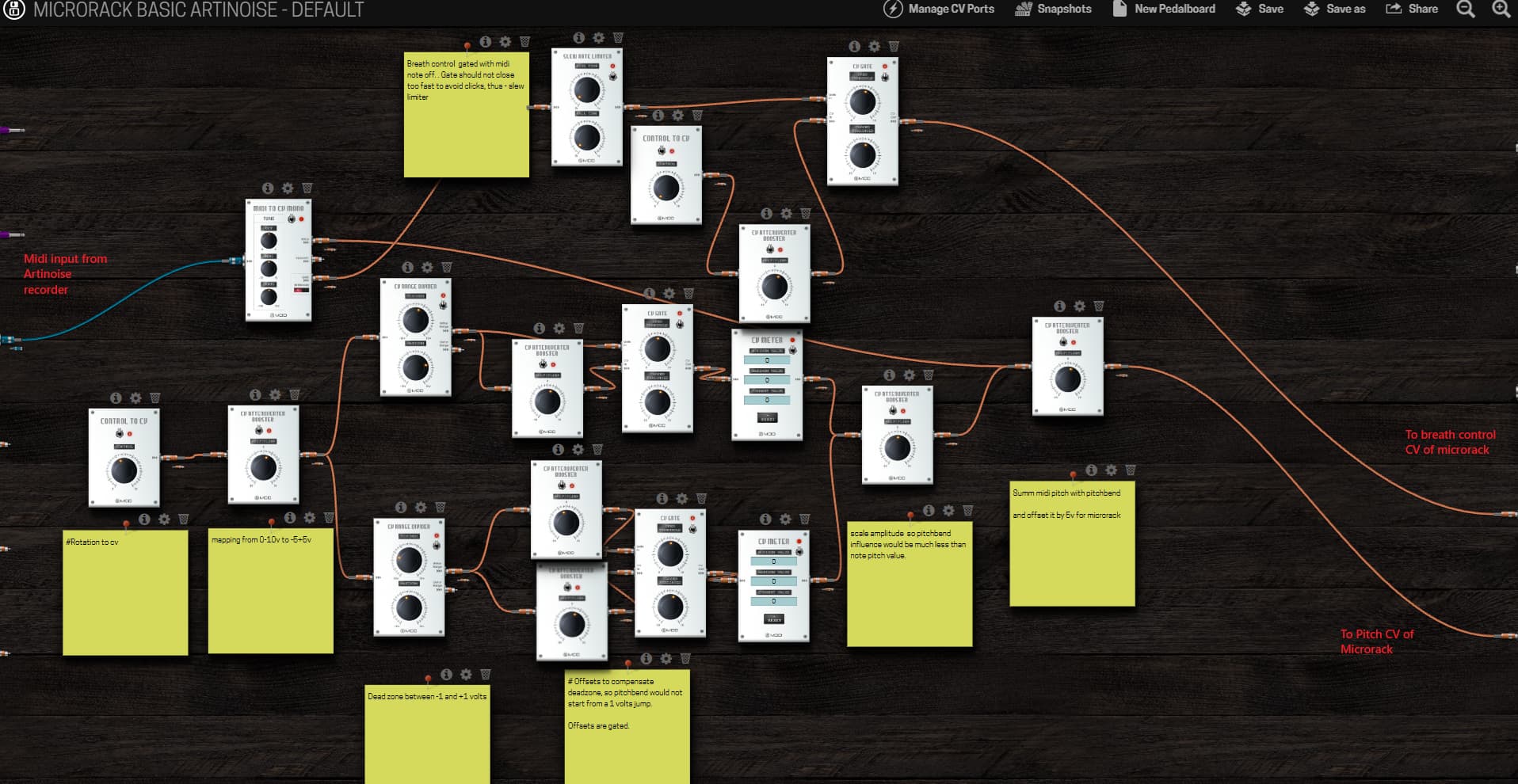 - Within MDX I had to use a lot of virtual plugins to achieve converting midi data into proper CV stream in the following way: