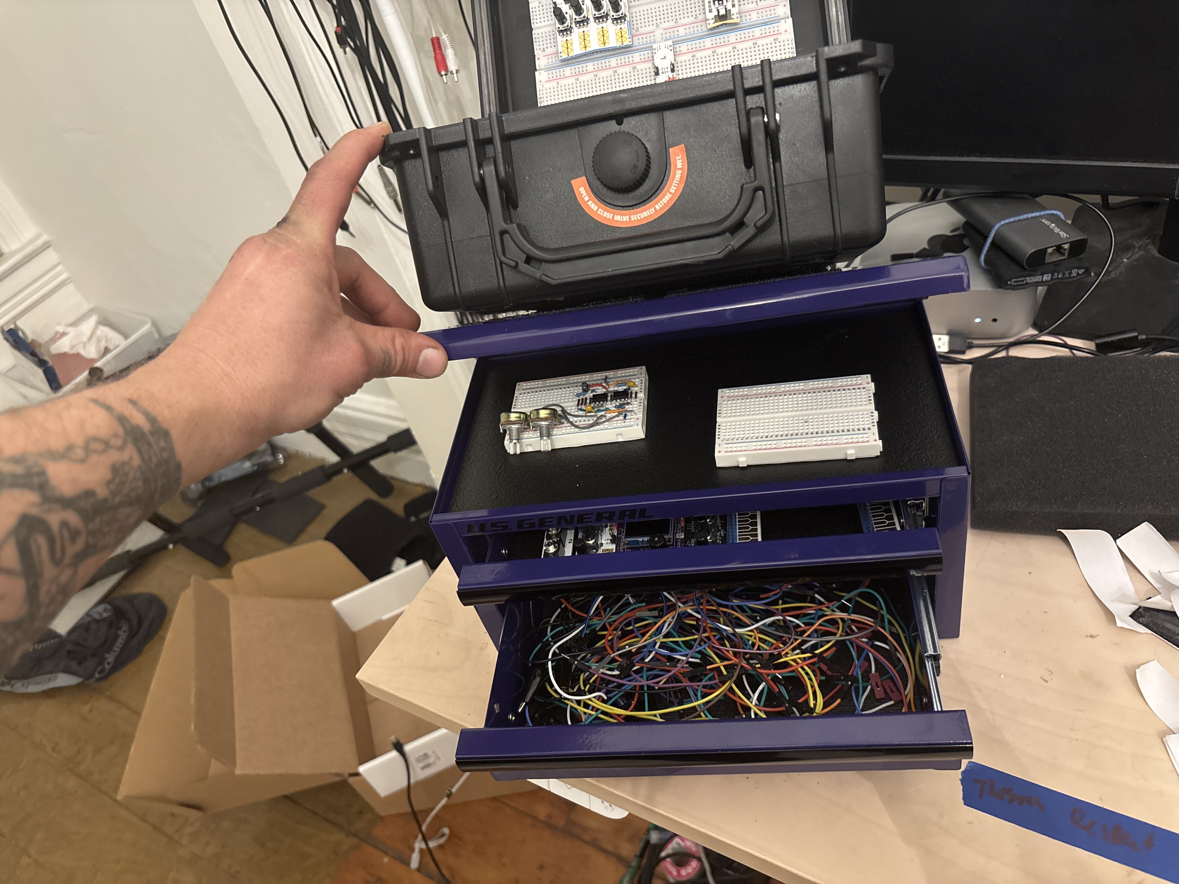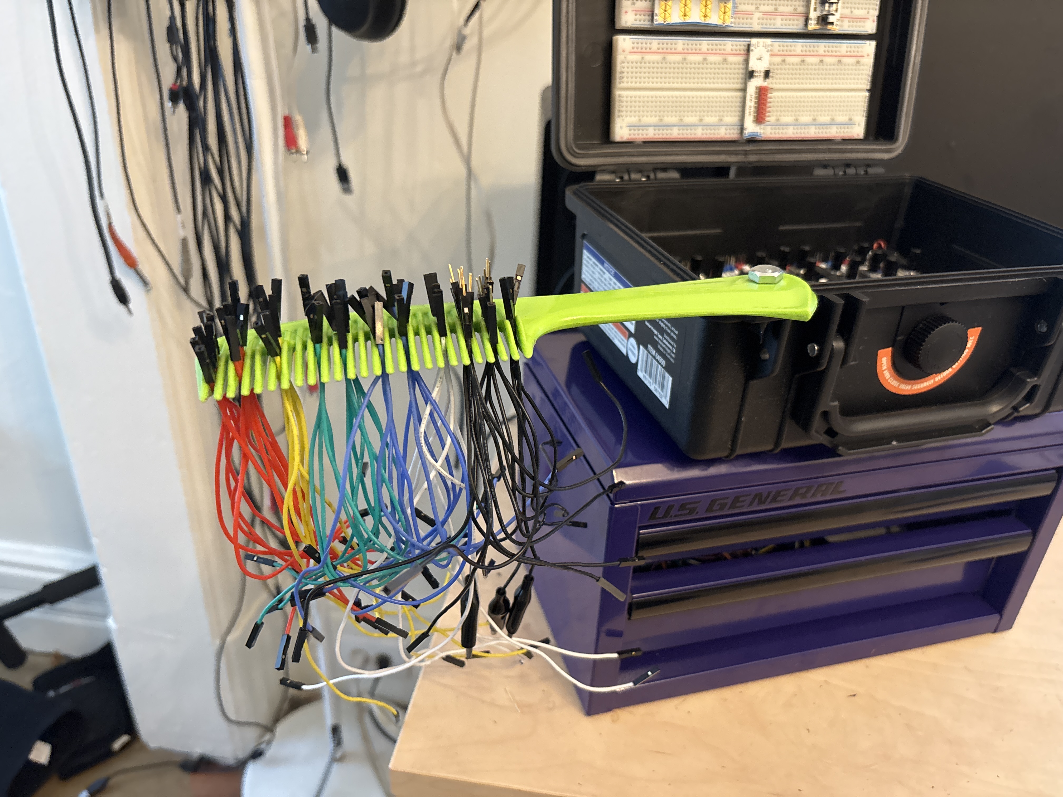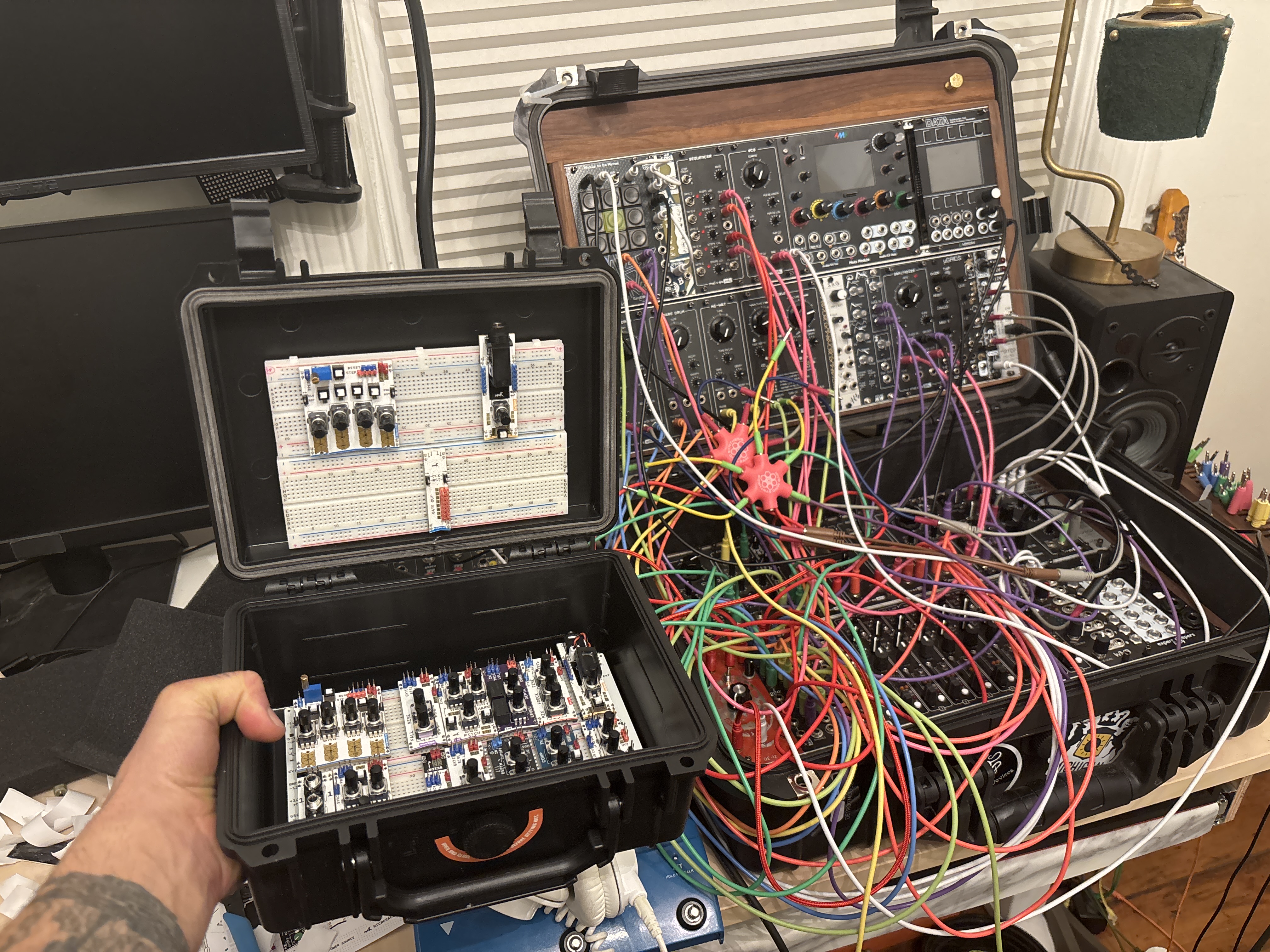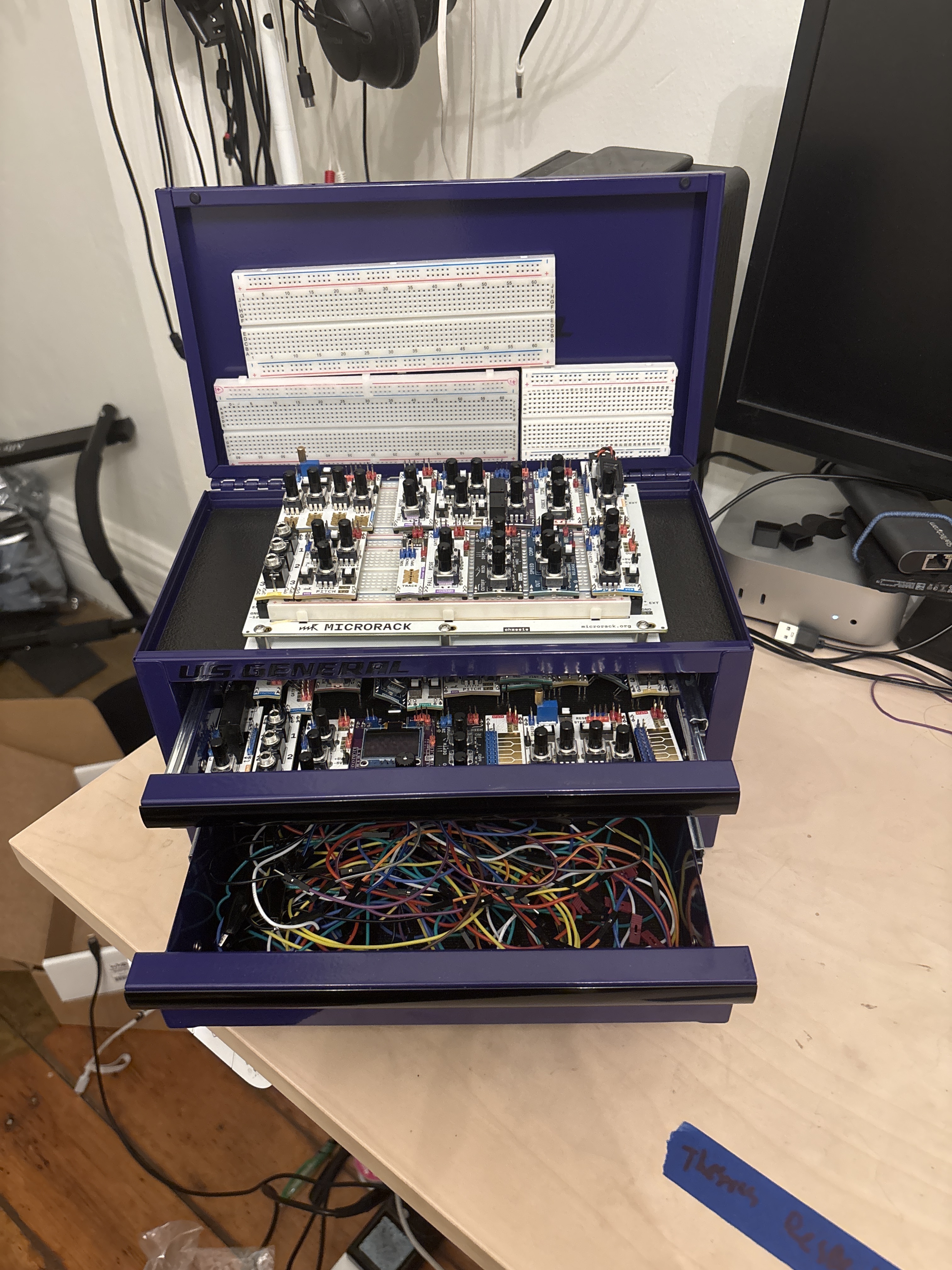 Second one is more kind of palette, when you need easy and fast access to a pool of modules, identify them at a first glance, to swap modules and rearrange them on the breadboards, without much overhead.